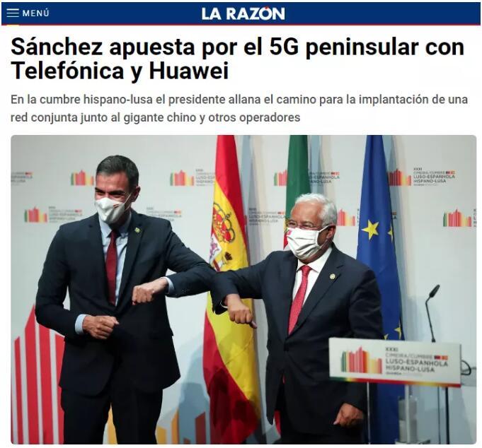 西班牙《理性报》12日在经济版发表题为《桑切斯把5G的希望寄托在西电和华为两家企业》的文章,介绍了桑切斯10日在葡萄牙北部瓜尔达市与葡总理科斯塔共同出席双边峰会后在联合新闻发布会上的讲话。西葡两国在峰会上就两国边界地区经济发展计划达成多项协议,其中包括未来3年的数字化建设等内容。